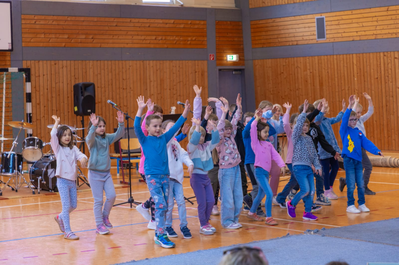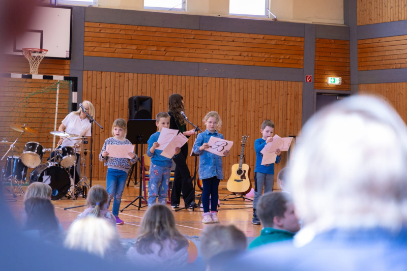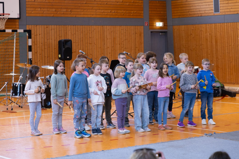 Auch die 1. Klasse unserer Grundschule beteiligte sich mit einem kleinen Beitrag: Die Kinder sangen, musizierten und tanzten und wurden dafür mit viel Applaus belohnt.