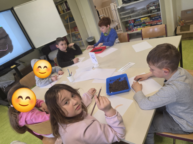 Anschließend ging es an verschiedene Stationen, an denen die Kinder rund um den Regenwurm forschen und entdecken konnten. Sie erfuhren Spannendes über seine Lebensweise und gingen unter anderem der Frage nach, ob Regenwürmer sehen oder hören können.