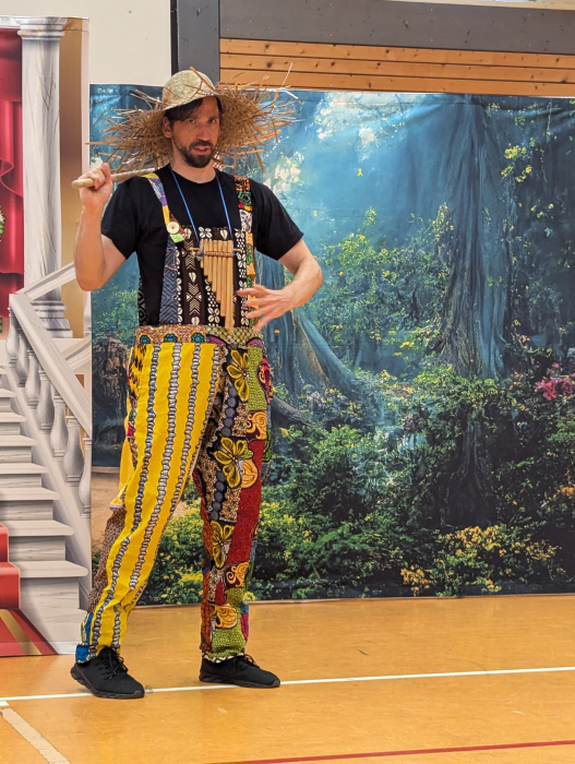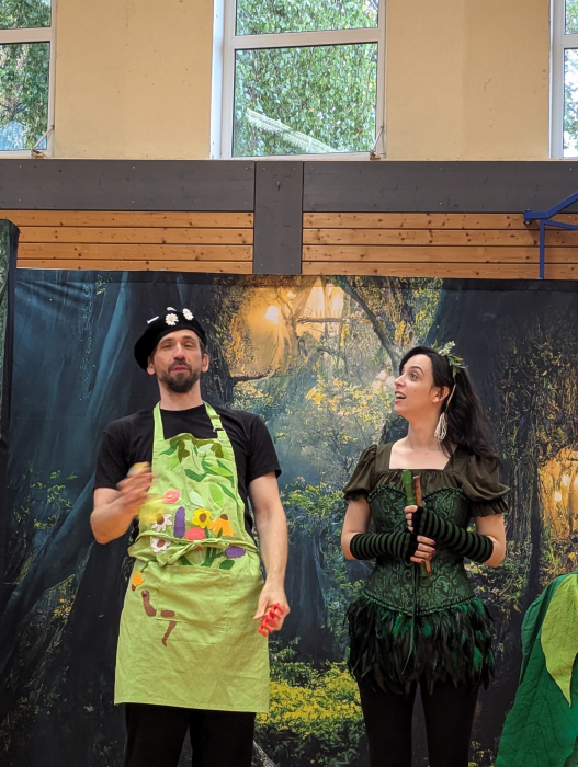Kurz vor den Ferien nahmen uns zwei Darsteller der Kinderoper mit auf Bellas fabelhafte Reise. Die Kinder staunten nicht schlecht über die bunten Kostüme und Gesangstalente. Auch einige Schüler durften als Mitspielkinder beim Programm mitwirken. Wieder einmal bot die Turnhalle eine ansprechende Bühne für diesen besonderen Tag, der nachhaltig in Erinnerung bleiben wird.